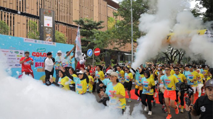 SERPONG – Ribuan peserta memadati kawasan BSD, Serpong, dalam gelaran Tangsel Color and Bubble Run pada Minggu (7/12/2025).
