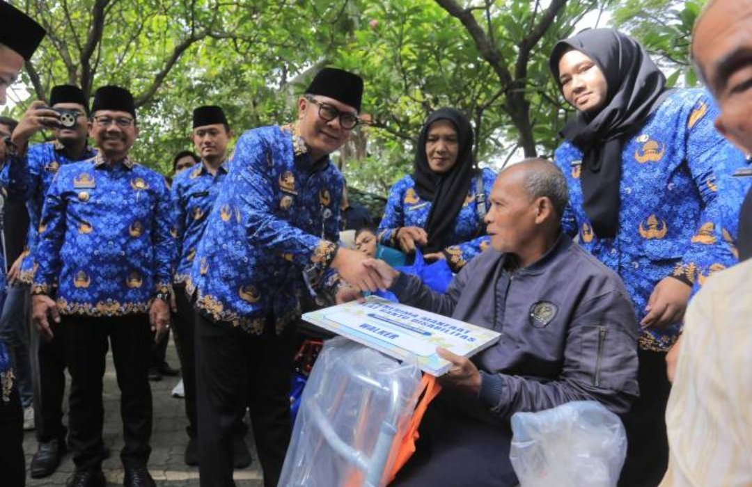 KOTA TANGERANG – Wali Kota Tangerang H. Sachrudin menyerahkan secara langsung bantuan sosial berupa paket sembako dan uang tunai kepada para veteran, serta bantuan kursi roda dan alat bantu dengar bagi penyandang disabilitas, pada momentum peringatan Hari Pahlawan Nasional (HPN) 2025 yang digelar di Taman Makam Pahlawan (TMP) Taruna Kota Tangerang, Minggu (10/11).