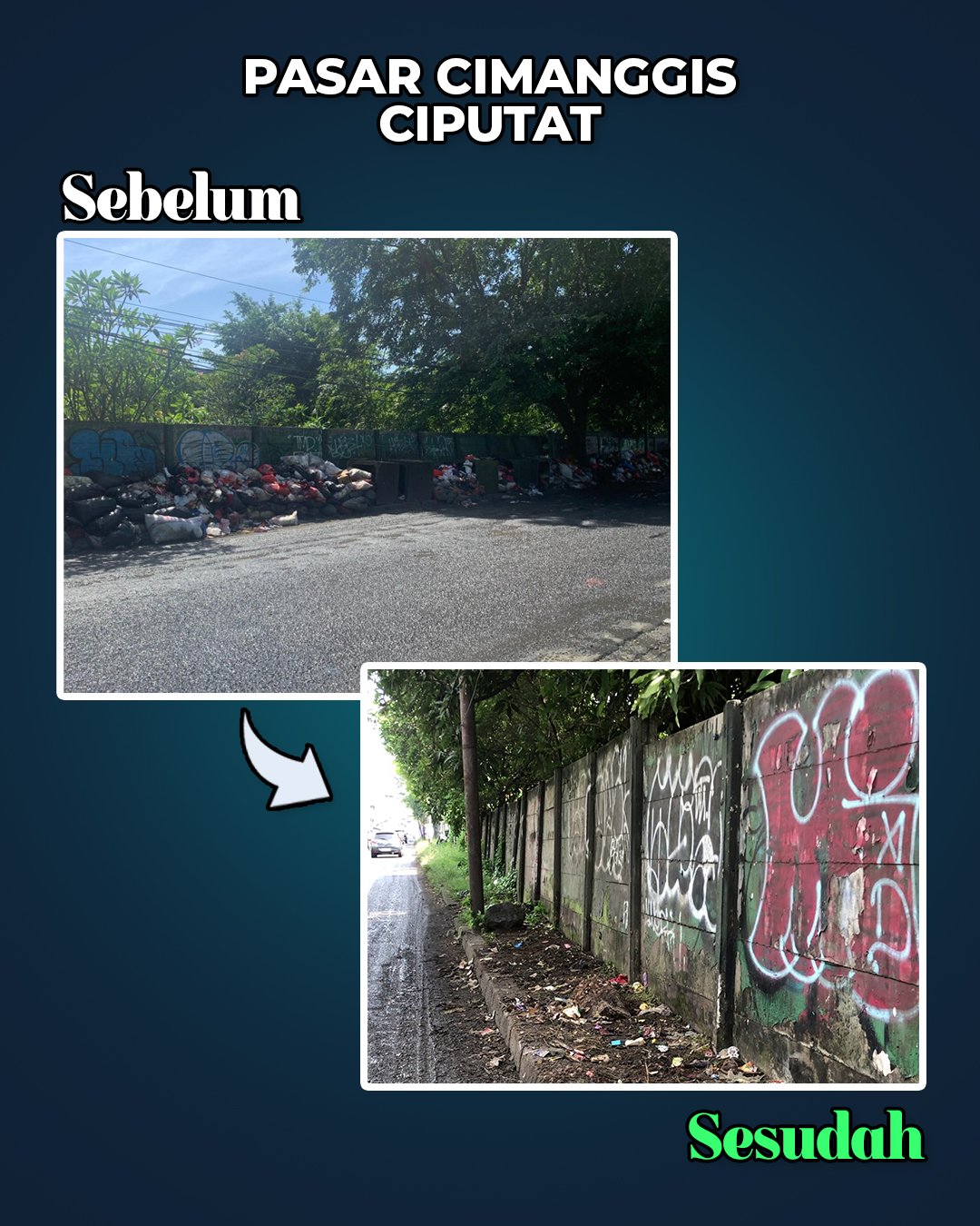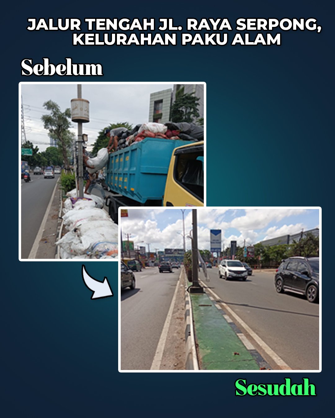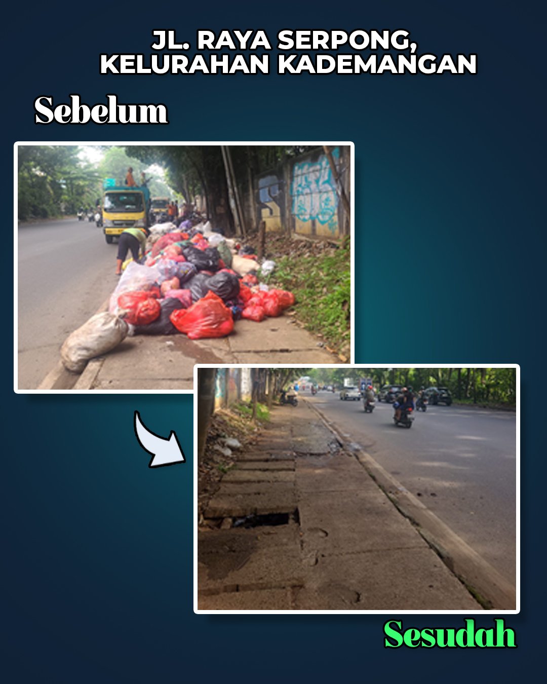 Sebagai bentuk transparansi dan akuntabilitas, dokumentasi foto kondisi sebelum dan sesudah pengangkutan sampah turut disertakan, menunjukkan progres nyata penanganan yang telah dilakukan Pemkot Tangsel. Pemerintah memastikan komitmen pelayanan kebersihan terus berjalan optimal hingga situasi benar-benar normal, sekaligus menjadi penguatan sistem pengelolaan sampah ke depan.