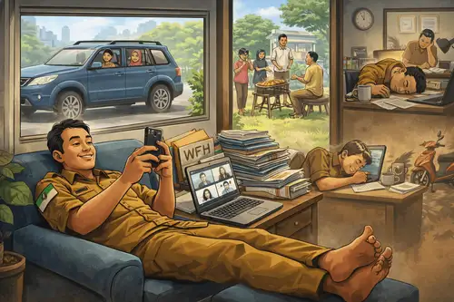 Namun di balik pernyataan itu, tantangan sebenarnya belum sepenuhnya terjawab. Sistem absensi digital dan laporan aktivitas harian memang menunjukkan kehadiran ASN di rumah, dengan tingkat kepatuhan disebut mencapai 70–80 persen. Tetapi angka tersebut belum sepenuhnya mencerminkan kualitas kerja yang dihasilkan.
